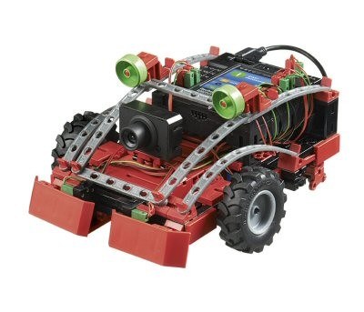 Inkl. ROBOTICS TXT Controller, Steuerungs-Software ROBO Pro (System: Windows XP, Vista, 7, 8, 10), USB-Kamera (1 MP), 2x Encoder-Motor, XS Motor, 2x LED, 2x Taster, Fototransistor, NTC-Widerstand.