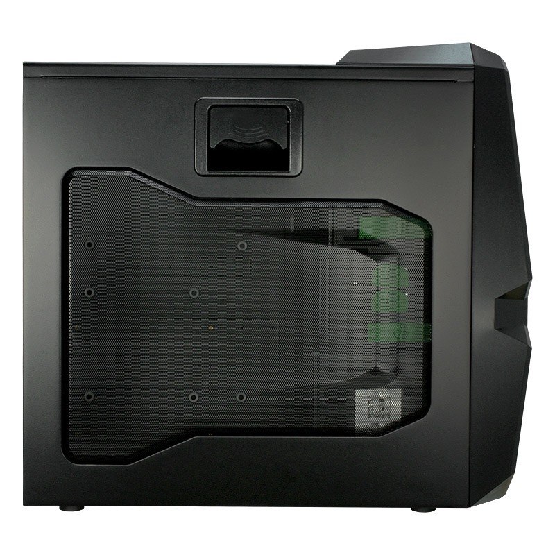 Raidmax präsentiert mit dem Blackstorm ein Gehäuse, das insbesondere die Gamer-Zielgruppe ansprechen soll. Der Big-Tower ist in verschiedenen Farbvariationen erhältlich und hat die Abmessungen 200 x 593 x 525 (B x H x T). Das futuristischen Gamer-Gehäuse Platz für vier 5,25-Zoll-Laufwerke, ein externes 3,5-Zoll-Laufwerk und vier 3,5-Zoll-Festplatten. In der Front sitzt ein grün leuchtender 120-mm-LED-Lüfter, der die Luft direkt über die vier Festplatten leitet. Die erwärmte Luft wird von einem zweiten vorinstallierten 120-mm-Lüfter im Heck abgeführt. Weitere Highlights sind die werkzeuglose Festplattenmontage, ein Frontpanel mit USB-Anschlüssen, einem E-SATA-Anschluss und den Audio-Anschlüssen.