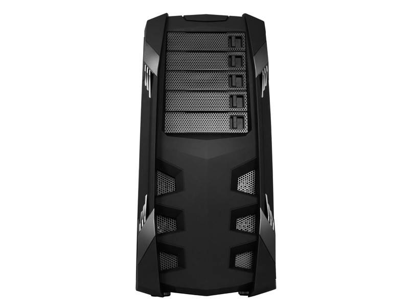 RAIDMAX präsentiert mit dem Vampire einen hochwertigen Full-Tower, der sich im oberen Portfolio des US-Unternehmens einordnet. Besonders auffällig sind das futuristische Design und die umfangreiche LED-Beleuchtung. Das I/O-Panel bietet je zwei USB-3.0- und USB-2.0-Ports, einen Kopfhöreranschluss und eine Mikrofon-Buchse. Dazu kommt eine kleine Lüftersteuerung, mit der die vorinstallierten LED-Lüfter geregelt werden können. Für besonders anspruchsvolle Gamer gibt es sogar die Möglichkeit, eine externe Wasserkühlung zu installieren.