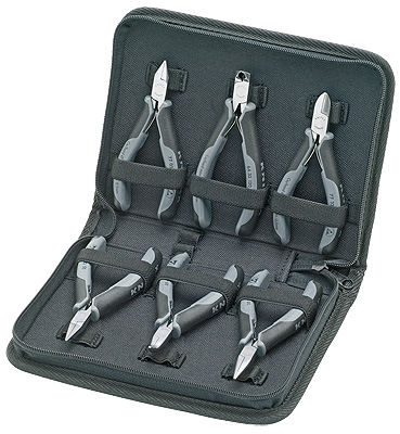 Das Knipex Elektronikzangen-Set 00 20 17 umfasst 6 hochwertige Zangen in ESD-Ausführung, die in einem strapazierfähigem Polyester-Etui geliefert werden. Die elektrisch ableitenden Zangen sind der perfekte Begleiter für Anwender, die sich im Bereich der Feinmechanik und Elektronik bewegen.